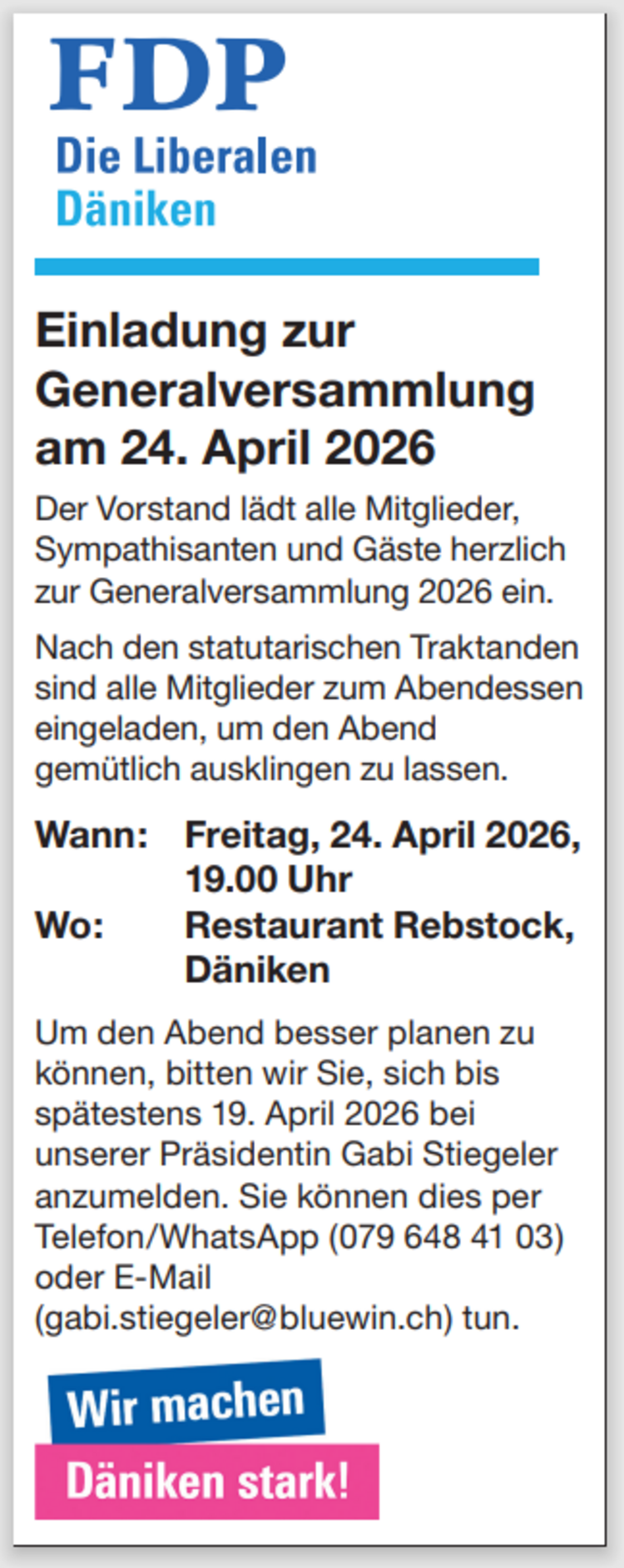 Generalversammlung FDP Däniken